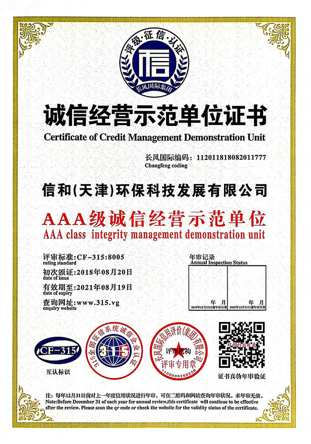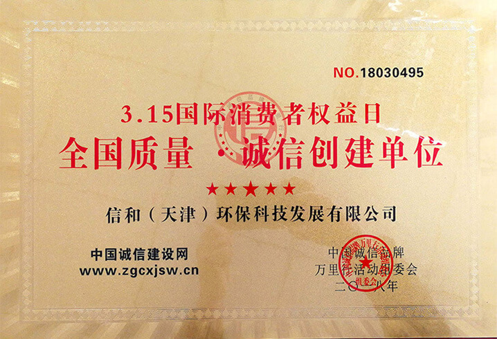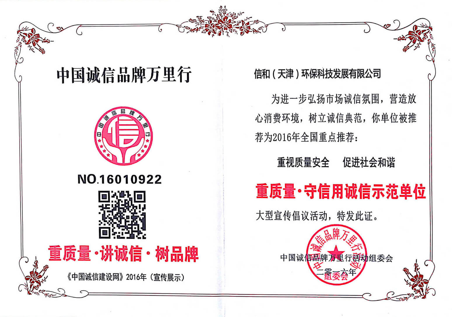 “質(zhì)量就是生命”。信和重質(zhì)量、守信用,被中國誠信品牌萬里行推薦“誠信示范單位”、“AAA資信等級”、“AAA級誠信經(jīng)營示范單位”、“誠信經(jīng)理人榮譽證書”、“誠信企業(yè)家榮譽證書”、“中國產(chǎn)品質(zhì)量放心達標企業(yè)”、“誠信品牌聯(lián)盟會員單位”、“中國質(zhì)量誠信AAA級品牌企業(yè)”、“中國百強優(yōu)秀企業(yè)”、“節(jié)能環(huán)保推廣產(chǎn)品”、“全國科技創(chuàng)新企業(yè)”等榮譽稱號。